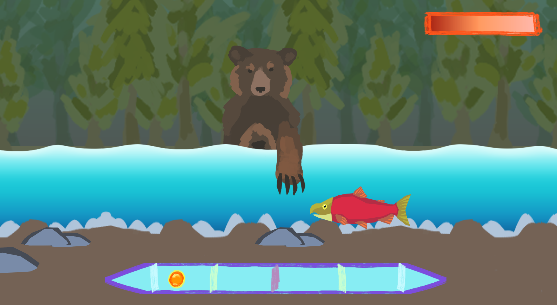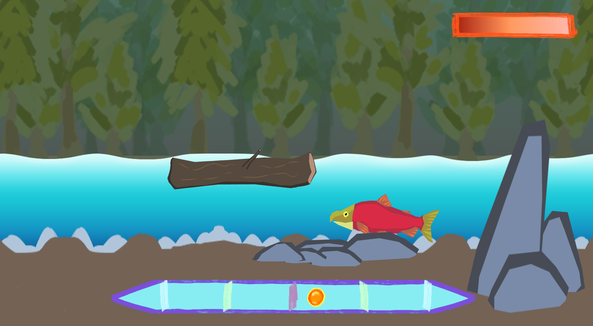 The idea was that as you progressed with the salmon, obstacles (visible in the screenshots) would generate along the way. Because of this issue, I had to remove the browser version - it had an even worse bug that I didn't notice until long after uploading. Apparently there's some collision issue preventing the salmon from jumping out of the water as it should.